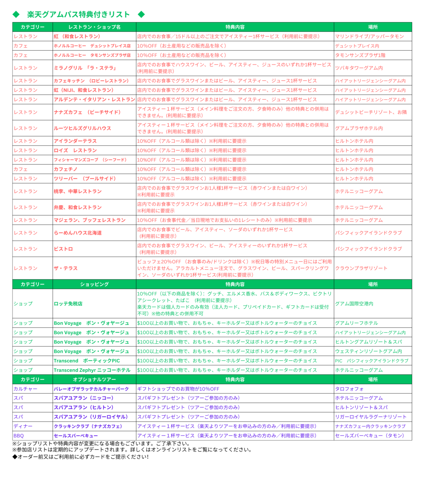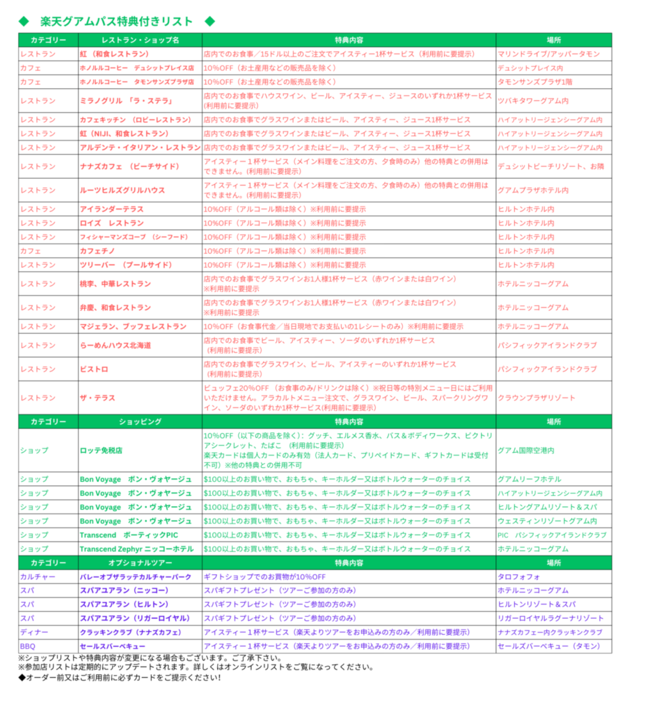 楽天トラベルグアムパス 見せるだけで特典がもらえます!