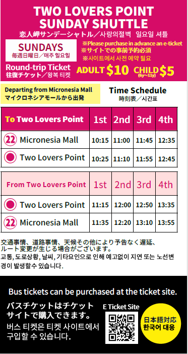 ・グアムの「赤いシャトルバス」タモンシャトル、ショッピングモールシャトル(北回り・南回り)について、以下の通りスケジュール変更および運行強化があります: